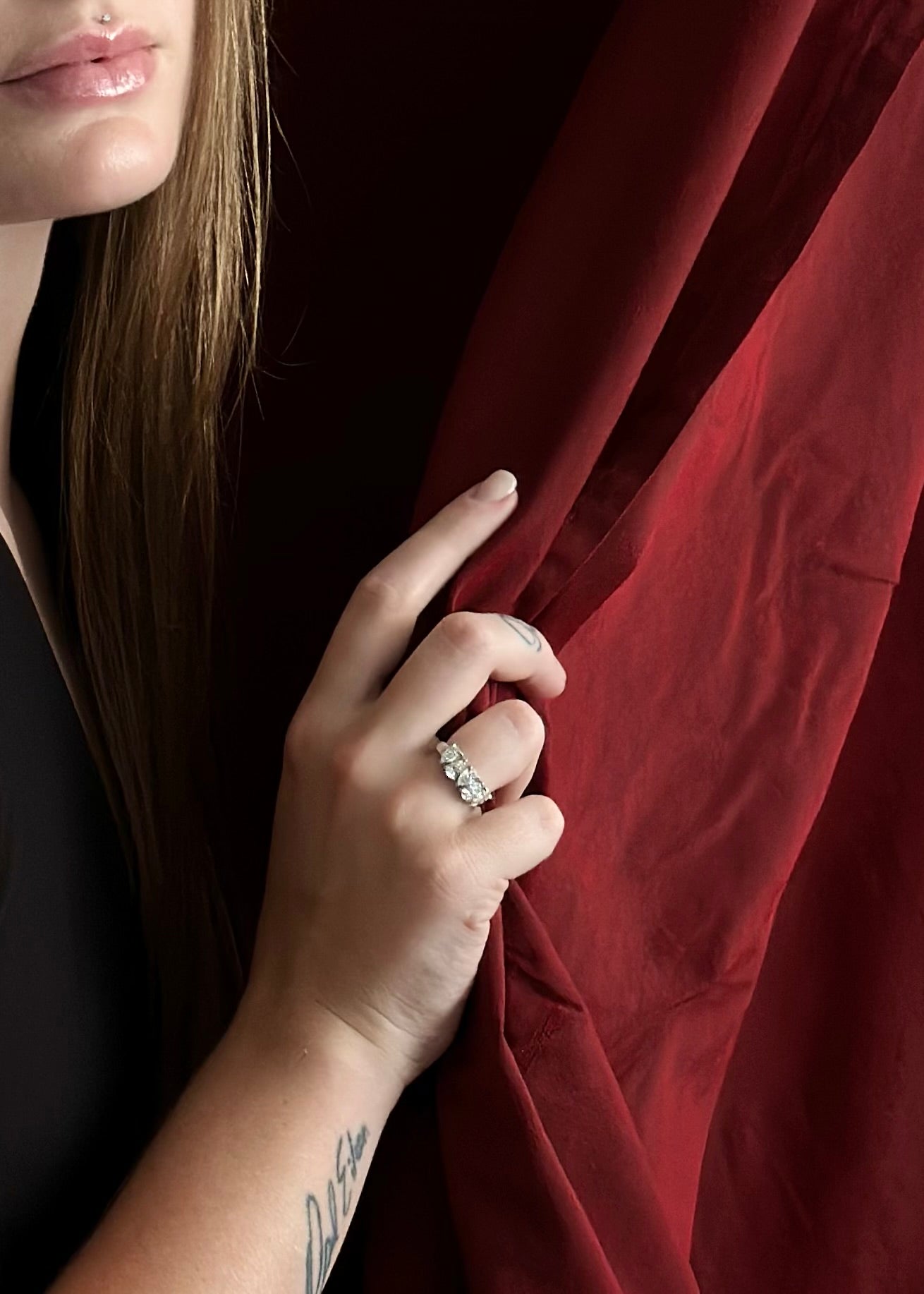 The ring is currently size 6 and comes with one complimentary resize.
